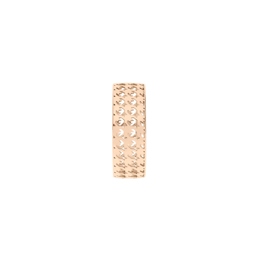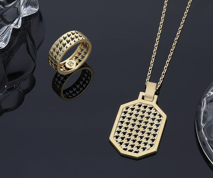 At the core of the collection lies a distinctive signature: an openwork structure in 18k gold that reveals rather than conceals. With a hypnotic, geometric pattern that plays with light and shadow, the design becomes a metaphor for self-awareness, letting the essence of the individual shine through, unfiltered.