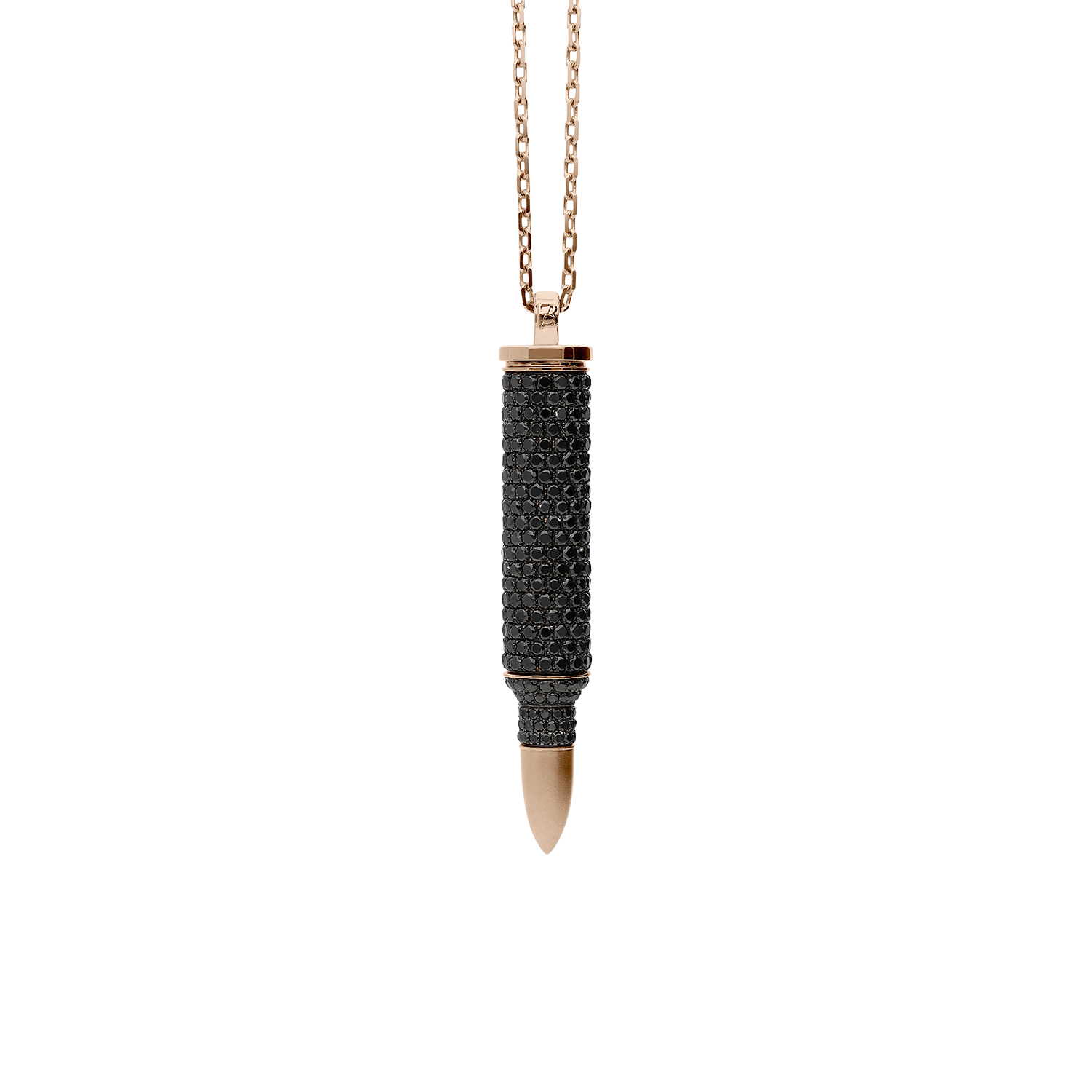 Bulletruth Collection Necklace in 18kt pink gold 17,80g with burnished body pavé and 7,50 ct GSI brilliant cut black diamonds. 70 cm total lenght