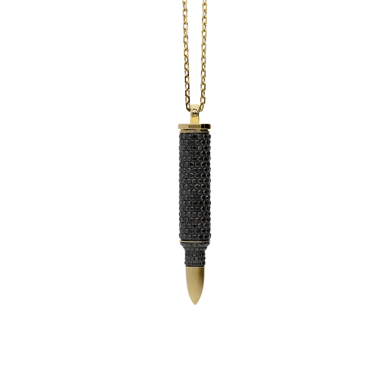 Bulletruth Collection Necklace in 18kt yellow gold 17,80g with burnished body pavé and 7,50 ct GSI brilliant cut black diamonds. 70 cm total lenght