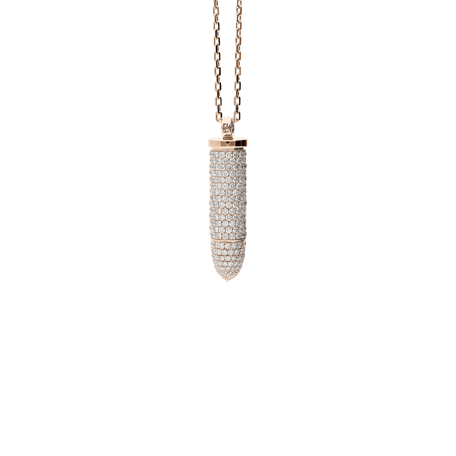 Bulletruth Collection Necklace in 18kt pink gold 16,90g with full pavé and 6,83 ct GSI brilliant cut white diamonds. 70 cm total lenght