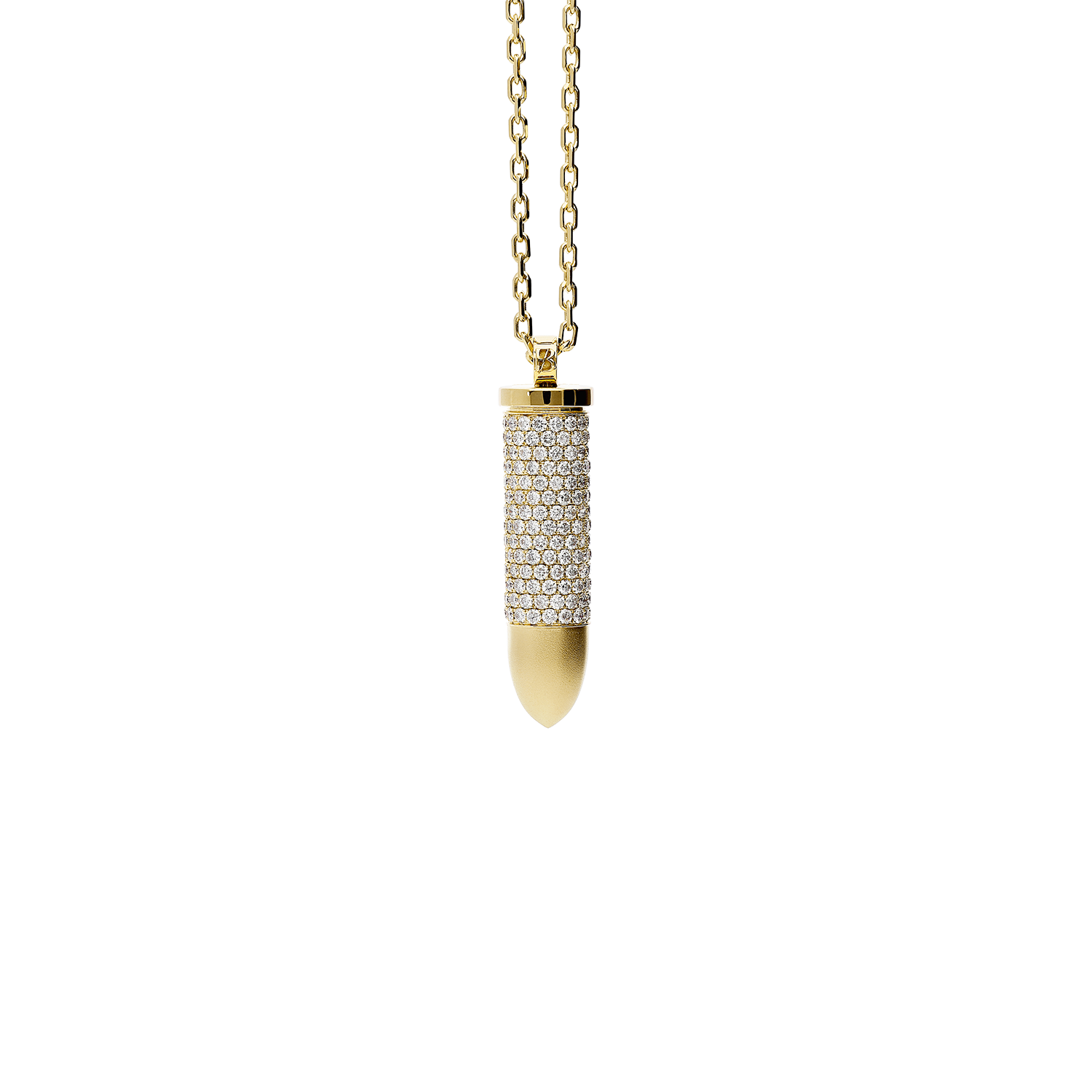 Bulletruth Collection Necklace in 18kt yellow gold 21,70g with body pavé and 4,68 ct GSI brilliant cut white diamonds. 70 cm total lenght