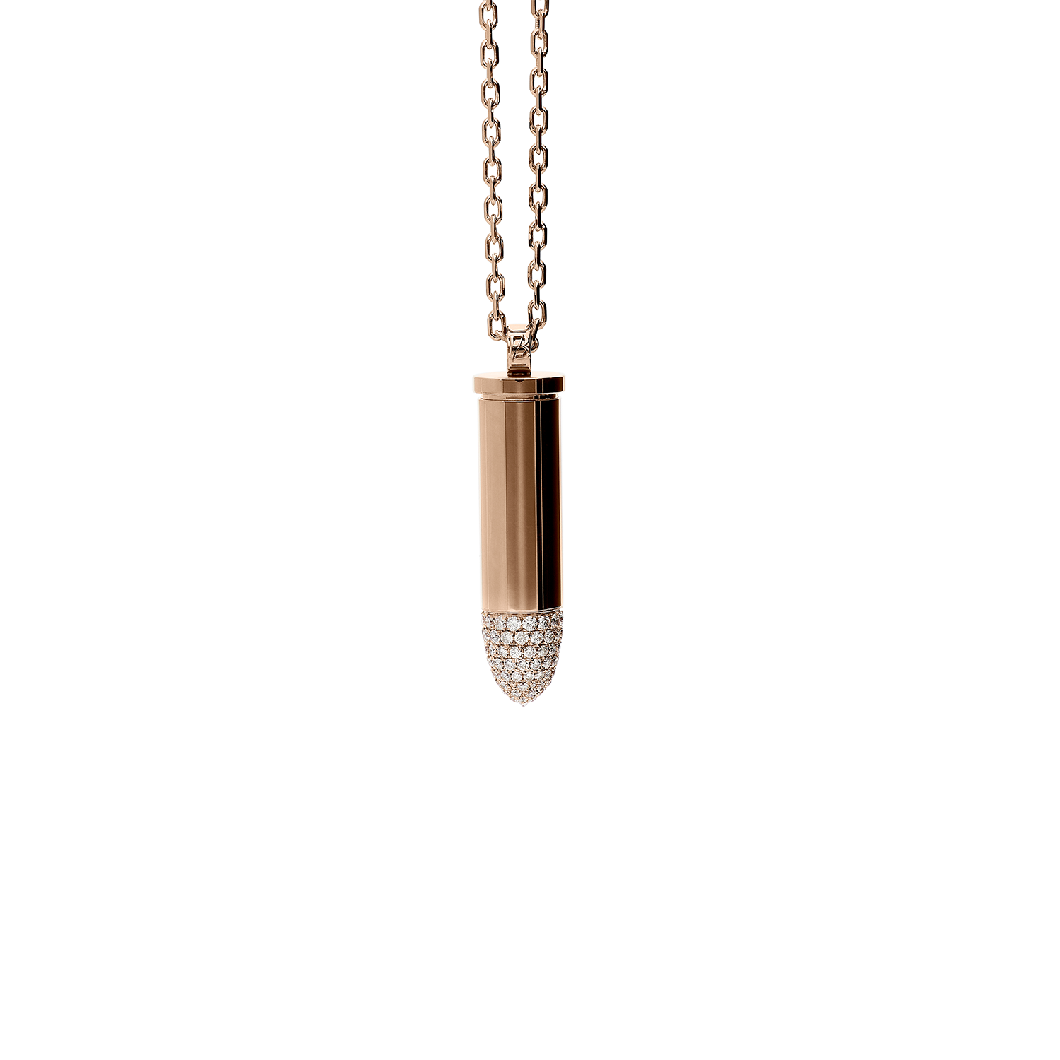 Bulletruth Collection Necklace in 18kt pink gold 21,90g with head pavé and 1,44 ct GSI brilliant cut white diamonds. 70 cm total lenght