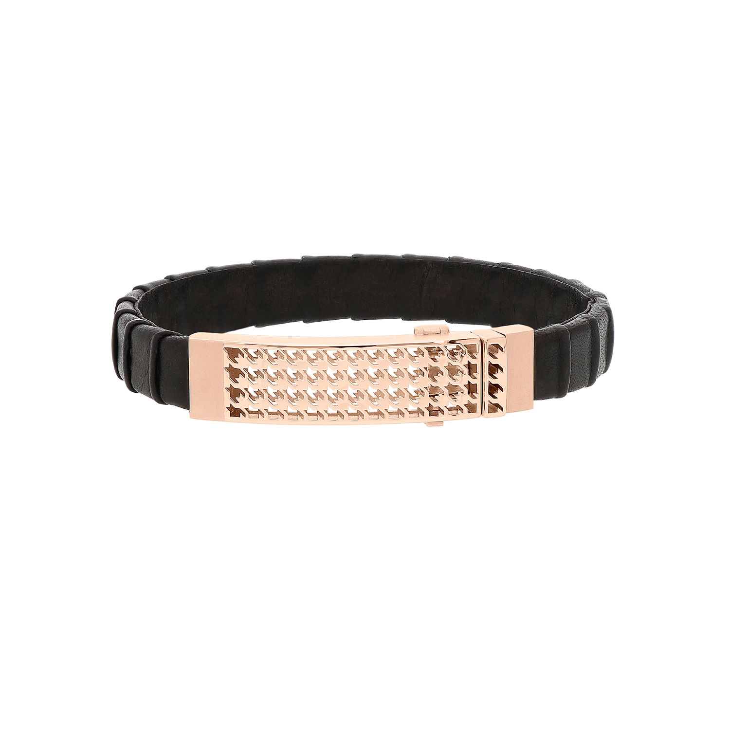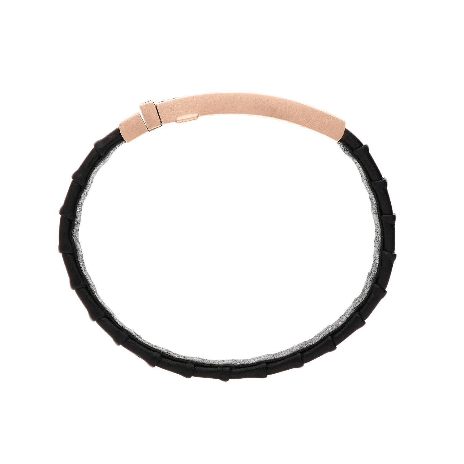 Clarity Collection Bracelet in 18kt pink gold 12,70g and real leather bamboo effect. 20 cm total lenght (16 cm of Leather)