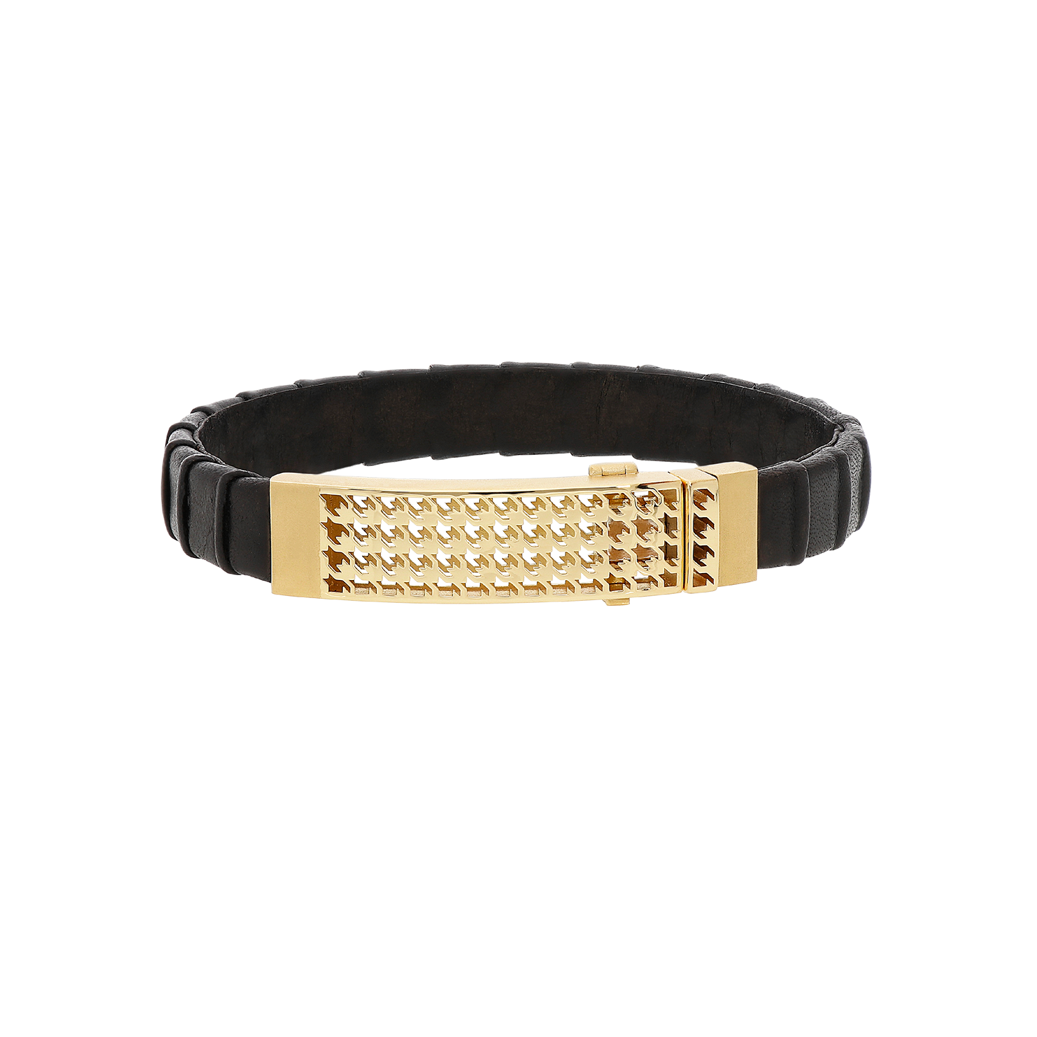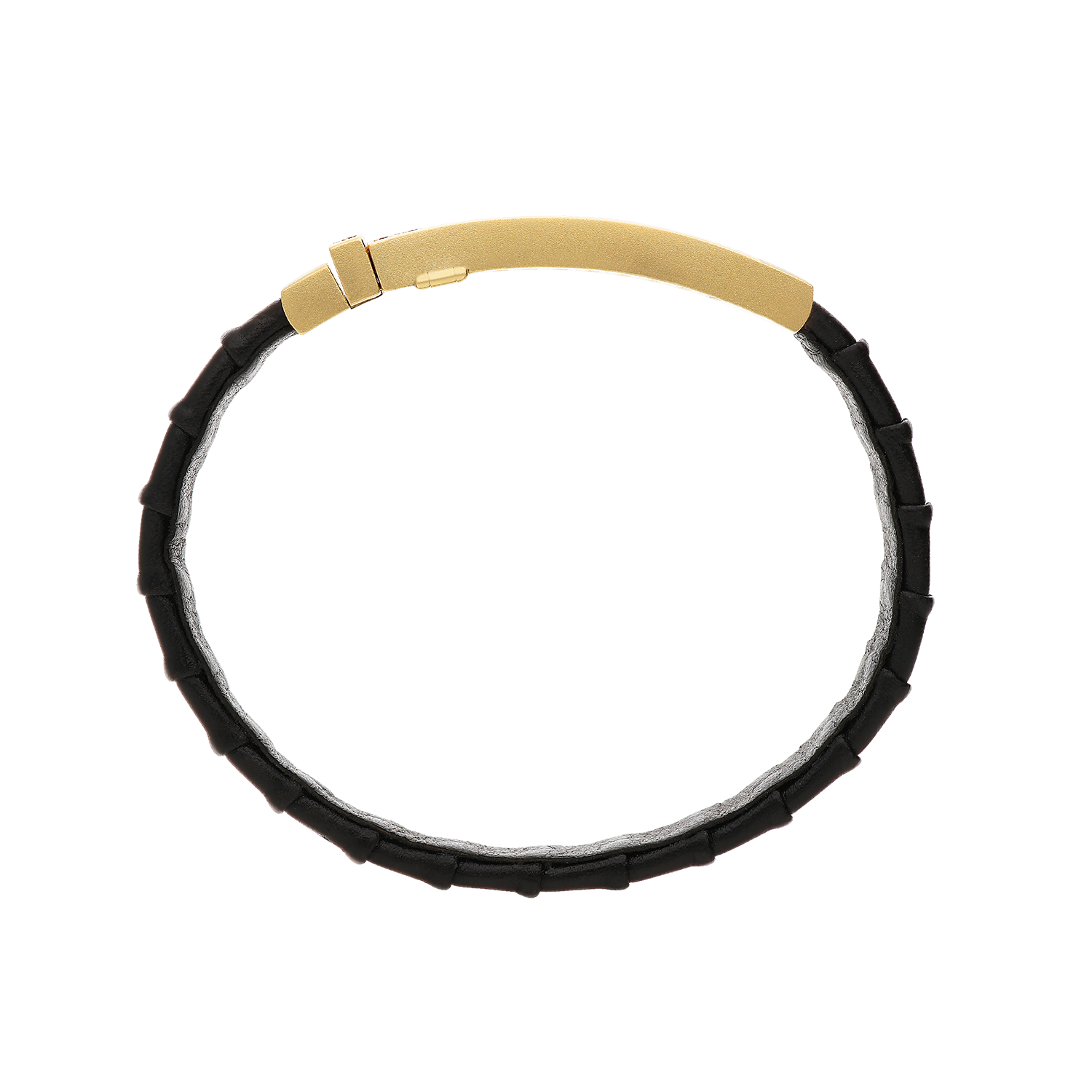 Clarity Collection Bracelet in 18kt yellow gold 12,70g and real leather bamboo effect. 20 cm total lenght (16 cm of Leather)