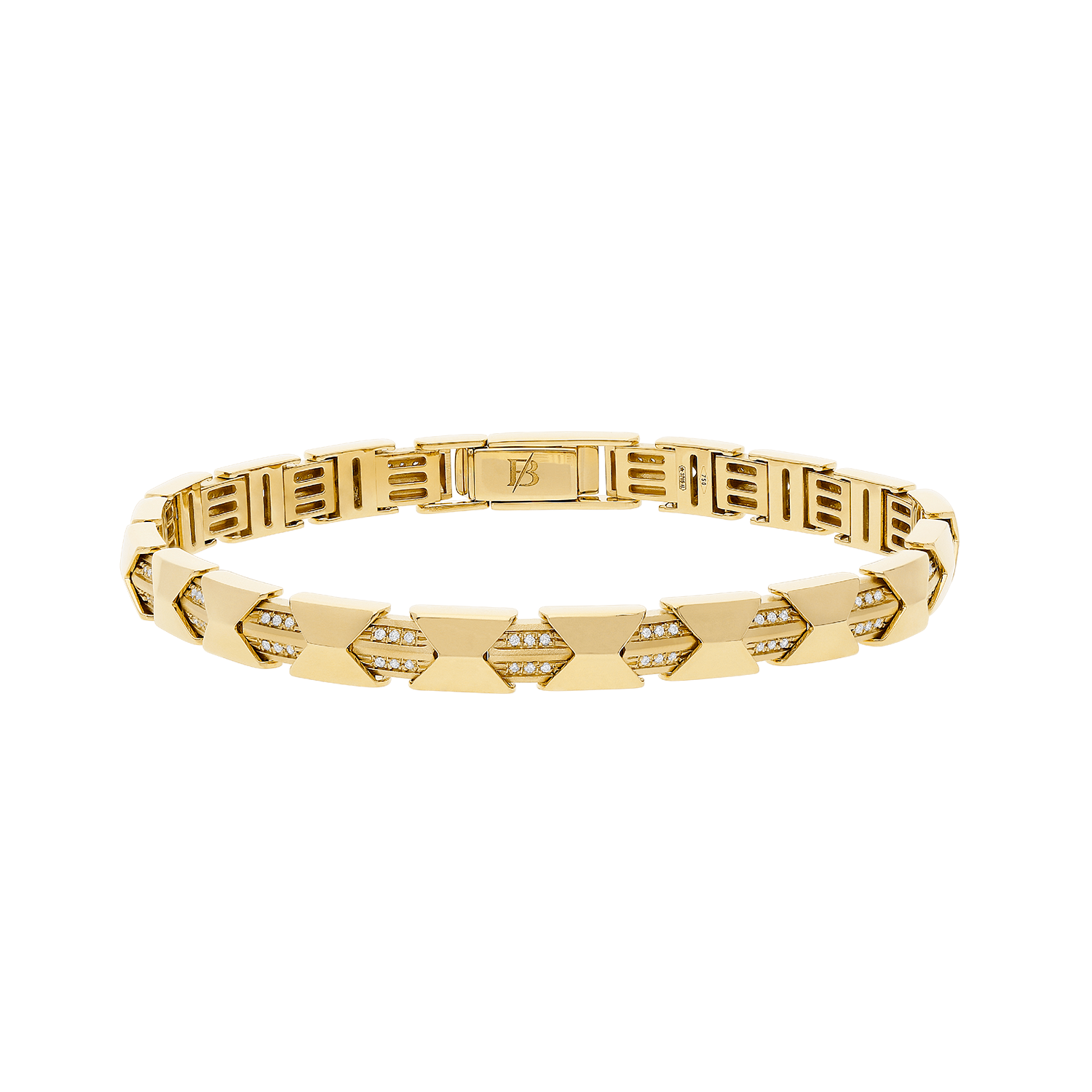 Elegance Collection Bracelet in 18kt yellow gold 23,88g with 0,33 ct GSI brilliant cut white diamonds. 20 cm total lenght