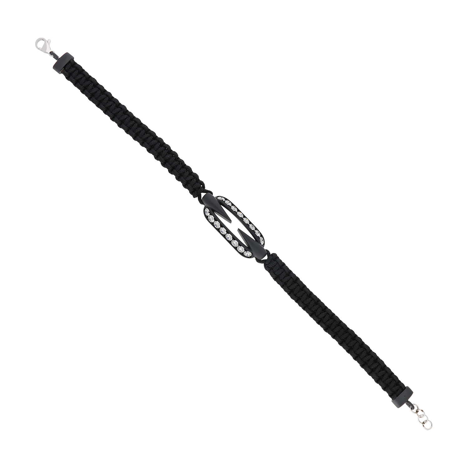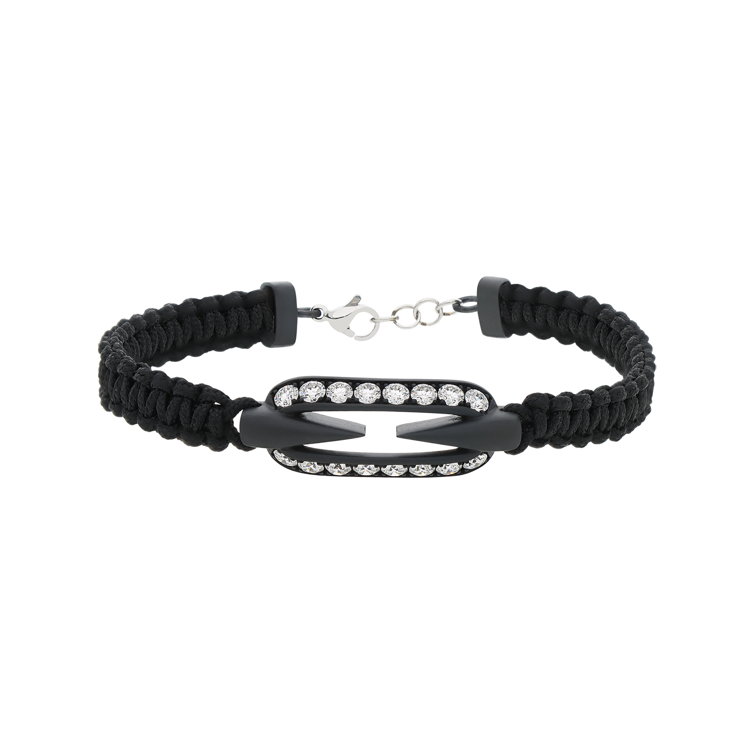 Titan Collection Bracelet in titanium black mat and cord with 1,65 ct GVS brilliant cut white lab grown diamonds. 18 cm total lenght