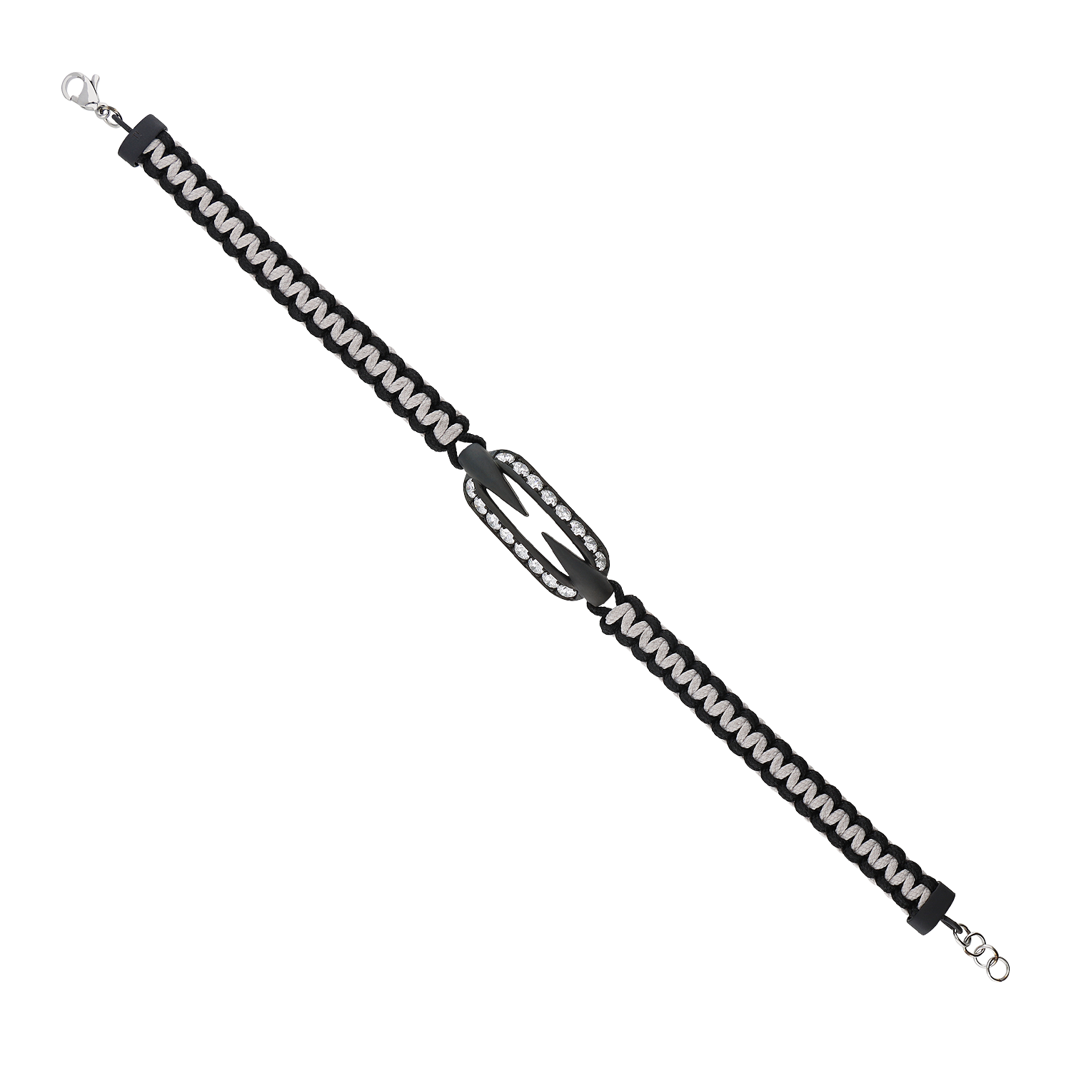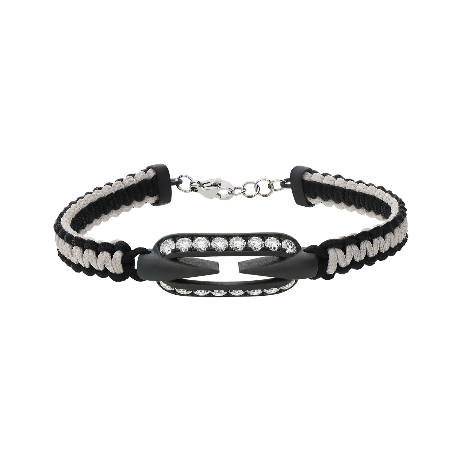 Titan Collection Bracelet in titanium black mat and cord with 1,65 ct GVS brilliant cut white lab grown diamonds. 18 cm total lenght