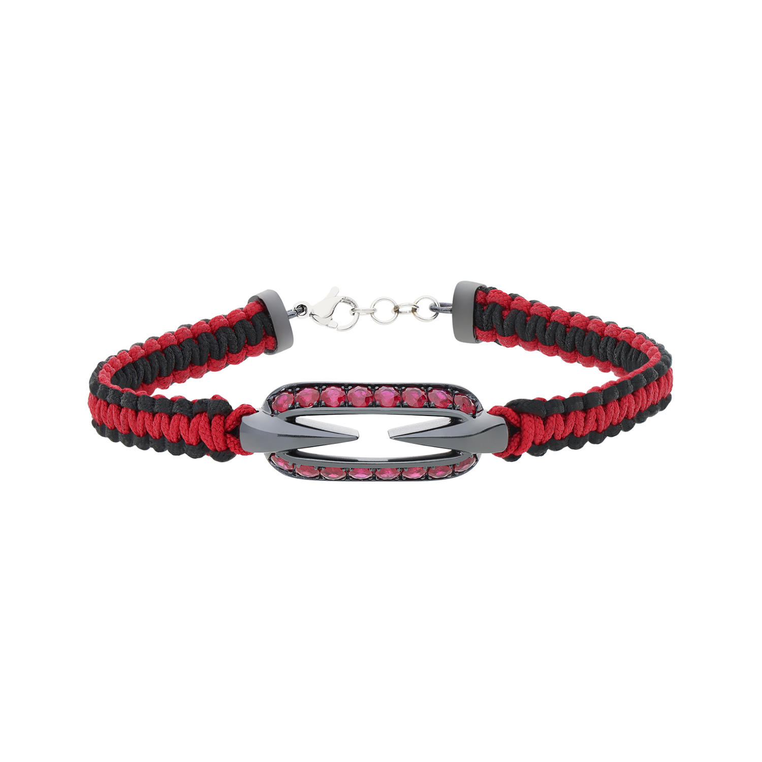 Titan Collection Bracelet in titanium grey mat and cord with 2,13 ct brilliant cut lab grown rubies. 18 cm total lenght