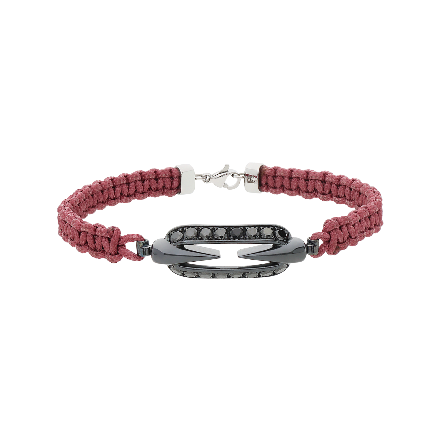 Titan Collection Bracelet in titanium grey mat and cord with 1,83 ct brilliant cut black diamonds. 18 cm total lenght