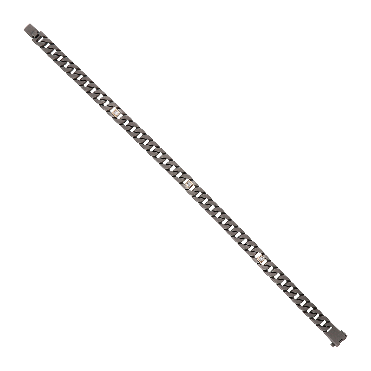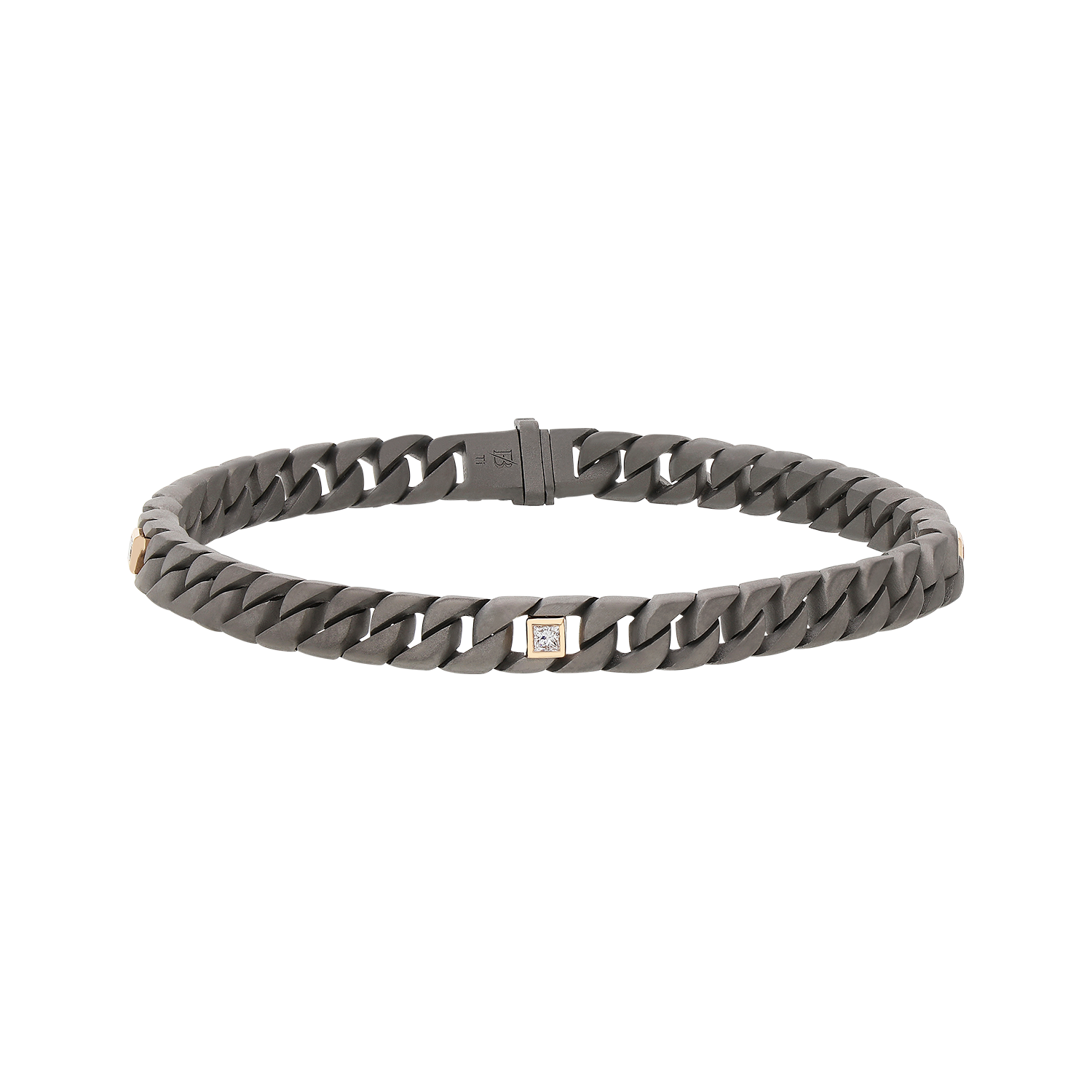 Titan Collection Bracelet in titanium grey mat and 18kt pink gold 1,34gr with 0,18 ct GVVS princess cut white lab grown diamonds. 18 cm total lenght