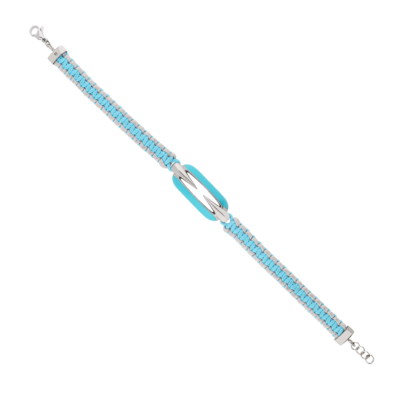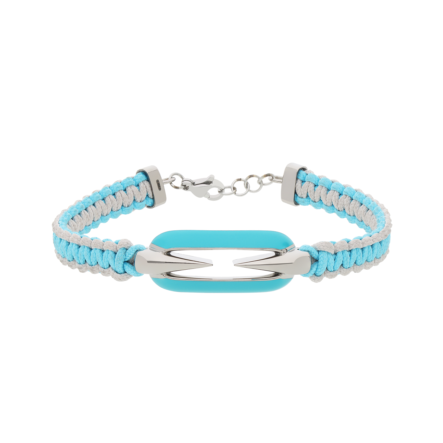 Titan Collection Bracelet in titanium grey lucid, turquoise enamel and cord. 18 cm total lenght