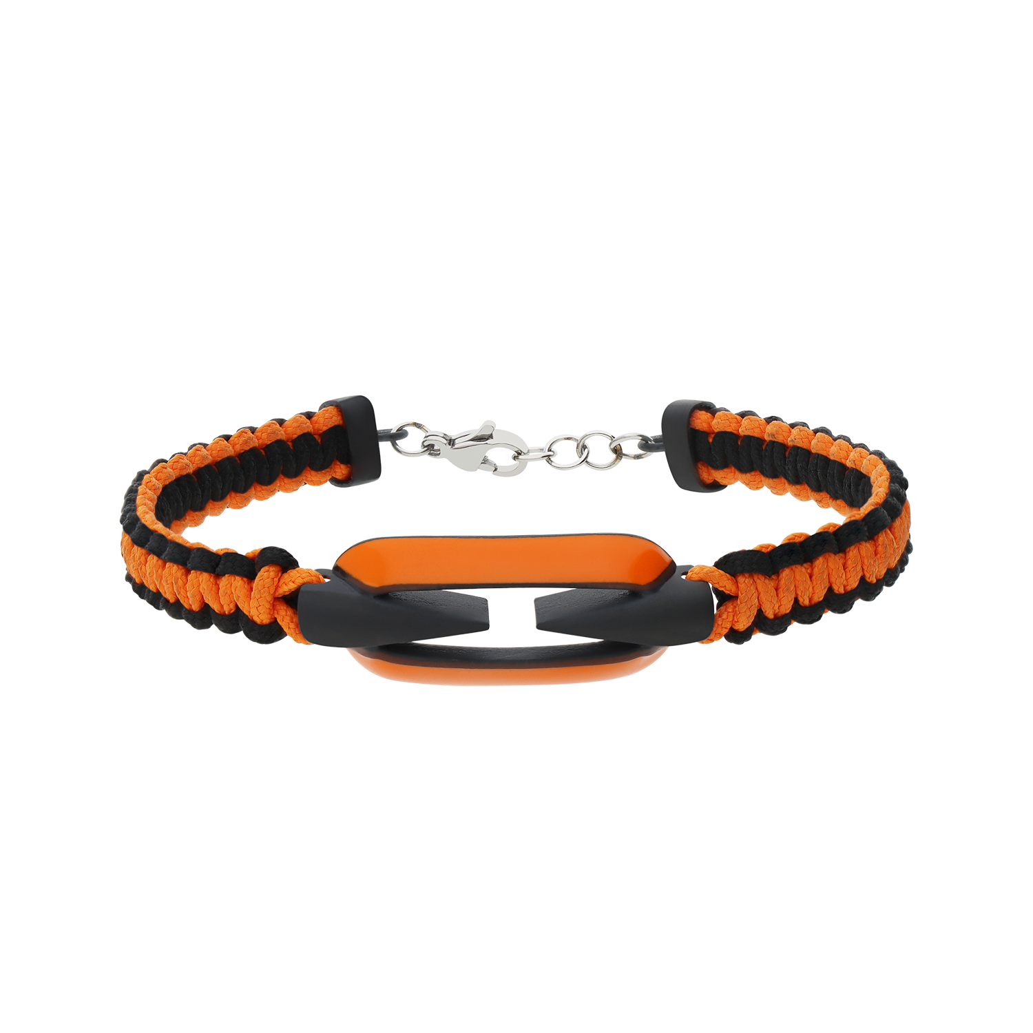 Titan Collection Bracelet in titanium black mat, orange enamel and cord. 18 cm total lenght