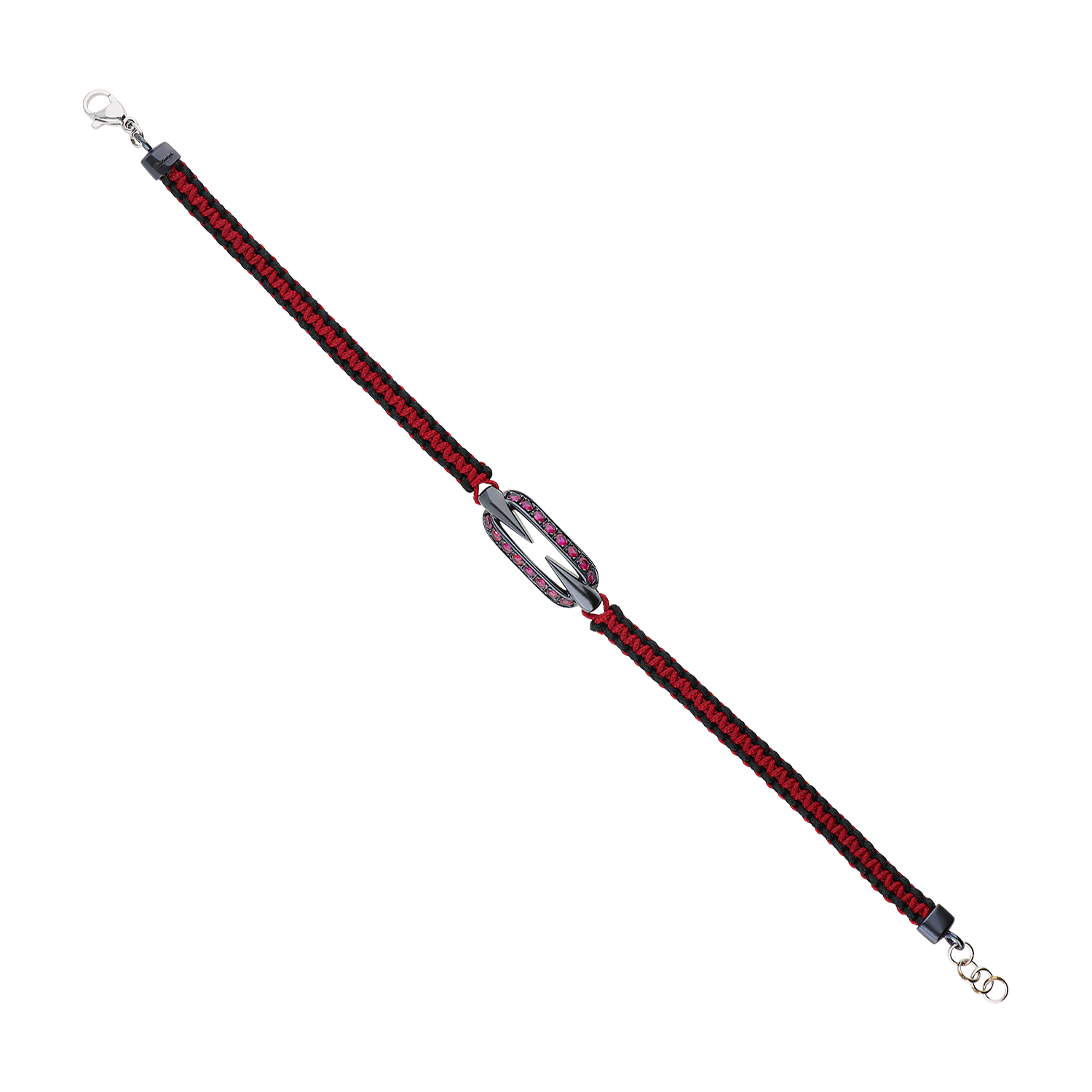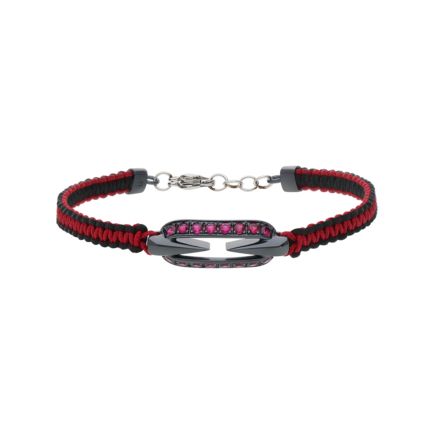 Titan Collection Bracelet in titanium grey mat and cord with 0,74 ct brilliant cut lab grown rubies. 18 cm total lenght