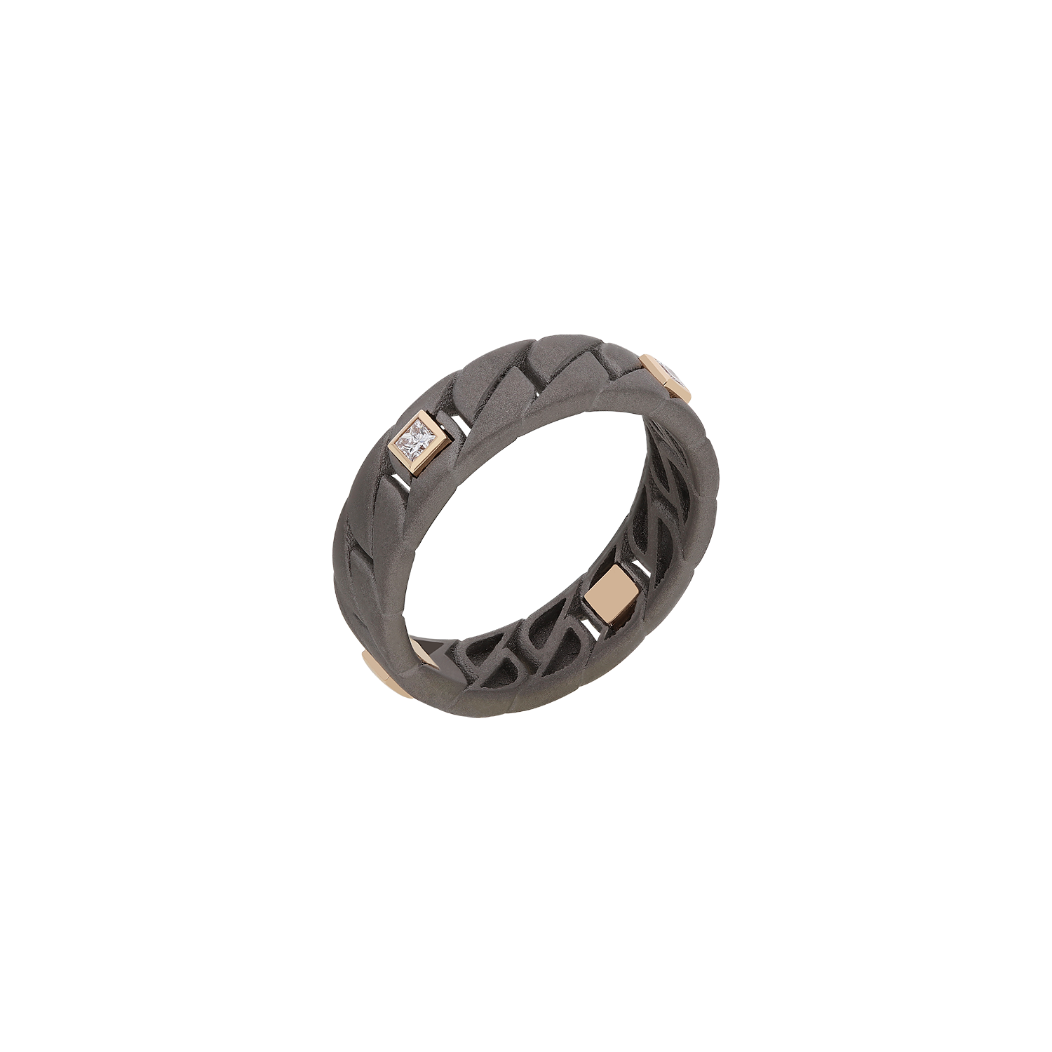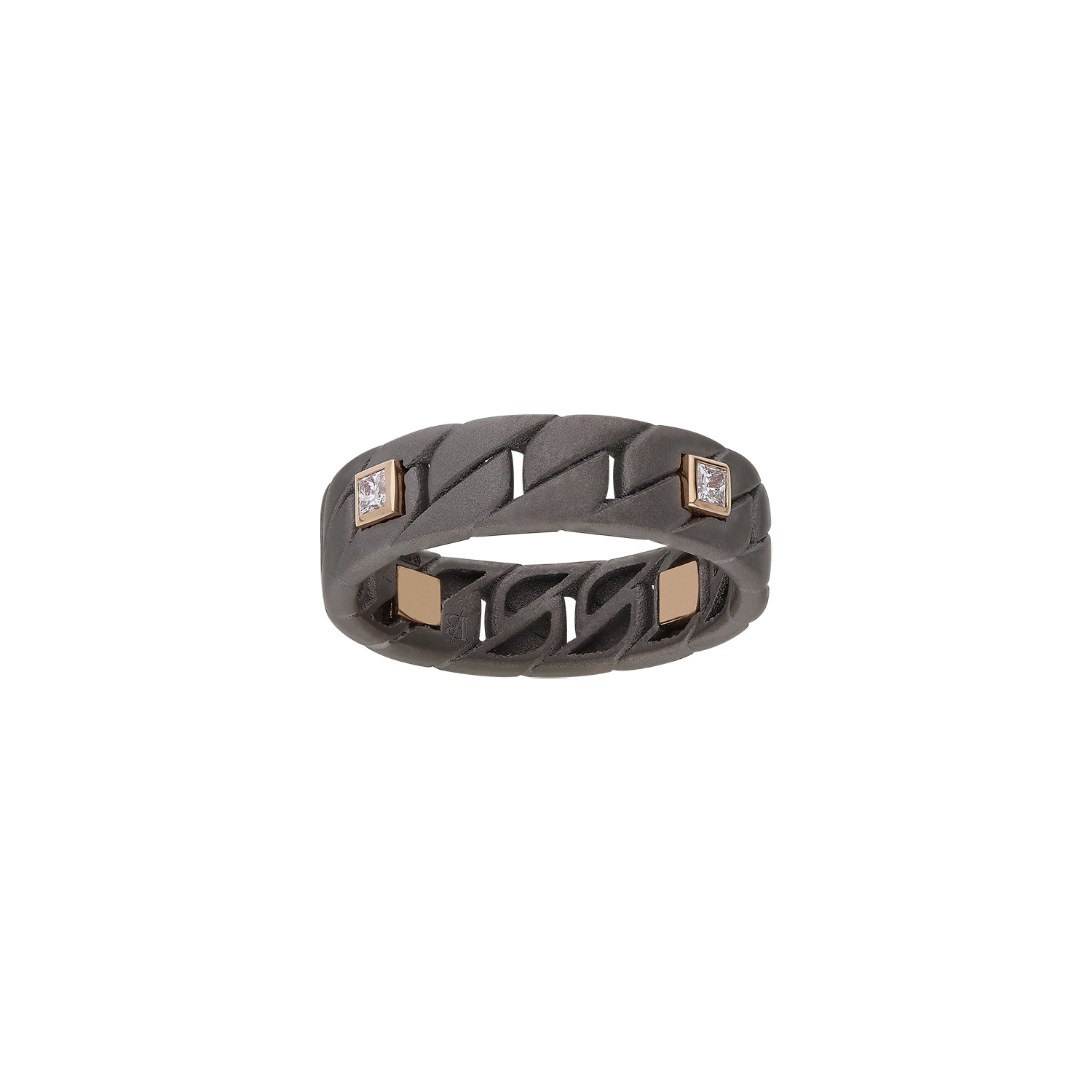 Titan Collection Ring in titanium grey mat and 18kt pink gold 1,45gr with 0,23 ct GVVS princess cut white lab grown diamonds.